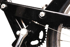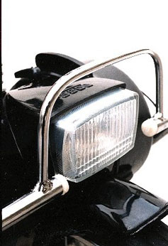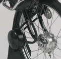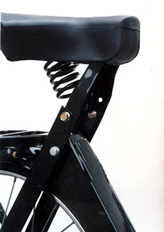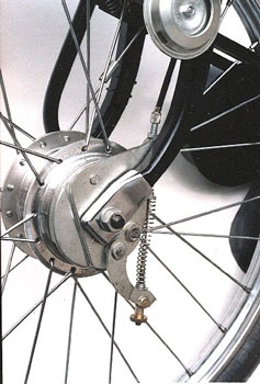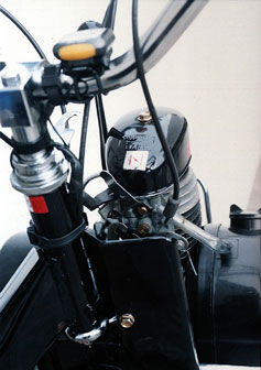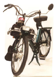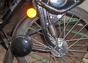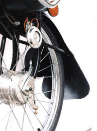 manetes padrão moto porta-ferramentas, bomba pneus e lanterna com refletores carburador com afogador e retorno de gasolina para o tanque espelho retrovisor, para choque de proteção cromados e alavanca de mudança "com motor" ou "bicicleta" guidon e banco "king-size" com mola helicoidal e regulagens de altura escapamento silencioso, buzina, suporte de placa e lanterna com luz de freios, descanso central e pedais cromados freio a tambor de 80 mm. dianteiro, buzina elétrica, para-choque cromado e farol de alta luminosidade regulagem simples do sistema de freio traseiro a tambor de 80 mm. Opcionais: velocímetro com odômetro e escapamento com catalisador freio a tambor dianteiro de 80 mm, buzina, refletor lateral, apara-barro para não sujar a roupa