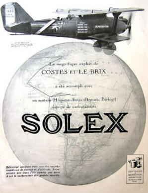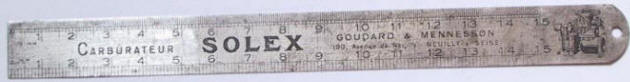 O diferente "radiador centrífugo" circular, usado também nos ônibus e caminhões De Dion - França Os motivos para utilização desse nome são a palavra "sol" em francês, que é SOLEIL e o radiador que tinha uma forma circular. Após a Primeira Grande Guerra, esse tipo de radiador começou a ter pouco uso, parte pelo desenvolvimento de novos processos de fabricação, como o tradicional radiador "de colméia" e parte pelos dois sócios terem sido chamados para o serviço militar. A empresa porém, continuou operando durante a guerra, sob a direção de Madame Jehanno e isso só foi possível graças à contratação da instalação dos radiadores circulares Solex nos ônibus ubanos pela Cia. Geral de Ônibus de Paris, em 1915. Em função do evidente limite da vida útil dos radiadores centrífugos, foi que Mennesson e Goudard começaram a trabalhar sobre as patentes de carburadores dos Srs. Jouffret e Renée (antigos amigos de escola) e foi aí que fundaram a "Companhia de Carburadores Solex". |