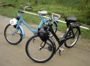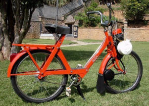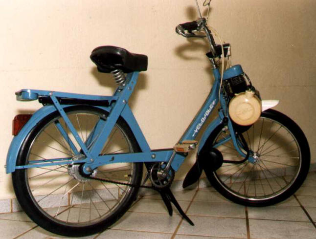 Trata-se de uma bicicleta "Gorda", de origem francesa, com um motor de 50 cc montado sobre a roda dianteira. A transmissão é feita por uma polia de ferro rugoso, semelhante a uma lixa grossa, que transmite o movimento do eixo de manivelas para o pneu. Foi febre na França e hoje ainda é utilizada como locomoção de pessoas, a baixo custo mas com algumas inovações tecnológicas importantes como: ignição eletrônica... ... caixa de direção reforçada... mais potência, freios a tambor nas 2 rodas entre outras.