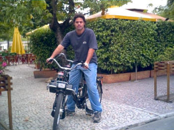 Max Fercondini era um dos atores mais animados na Villa de CARAS porque finalmente matou sua curiosidade de andar na Velosolex - bicicleta com motor alternativo. "Ela é perfeita para quem quer deixar o carro na garagem. Dá para percorrer grandes distâncias sem se cansar" disse ele, que adora pedalar pela orla carioca. (fotos George Magaraia - Revista CARAS). |